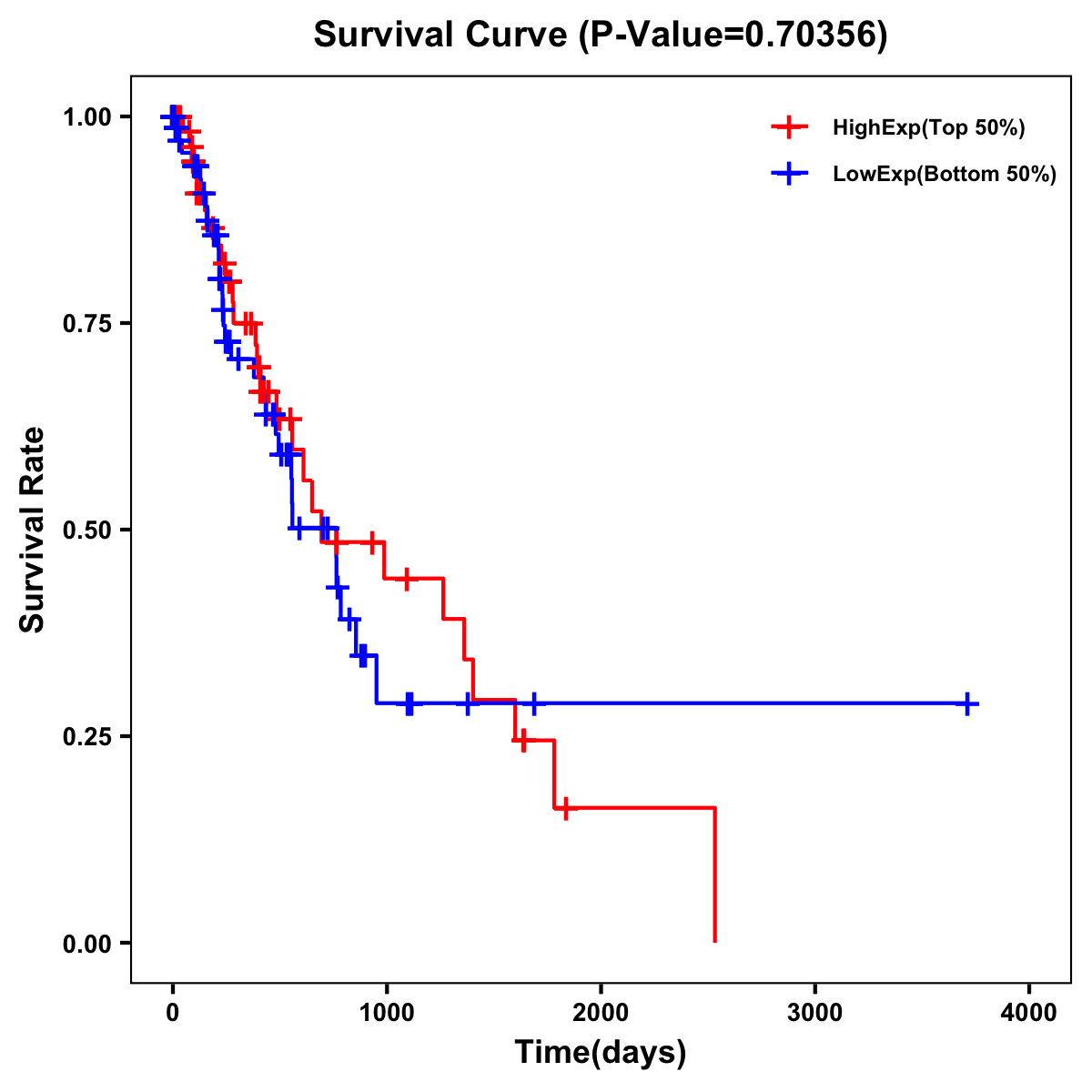 | Survival Curve of Esophagus Cancer of Expression | Survival Curve of Esophagus Cancer of Methylation | ||