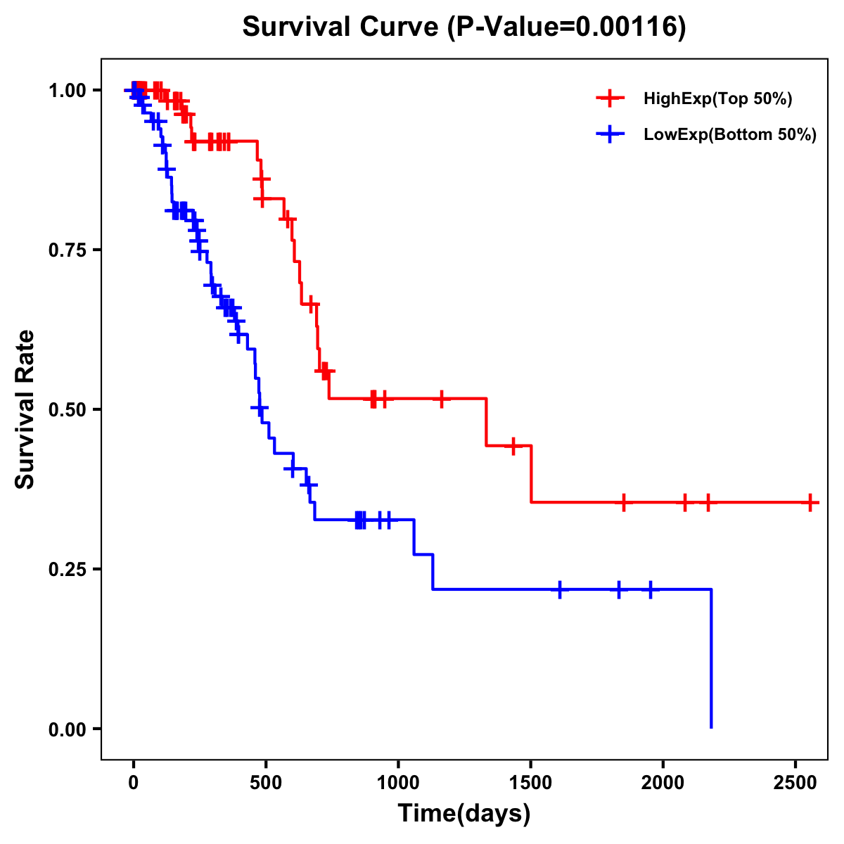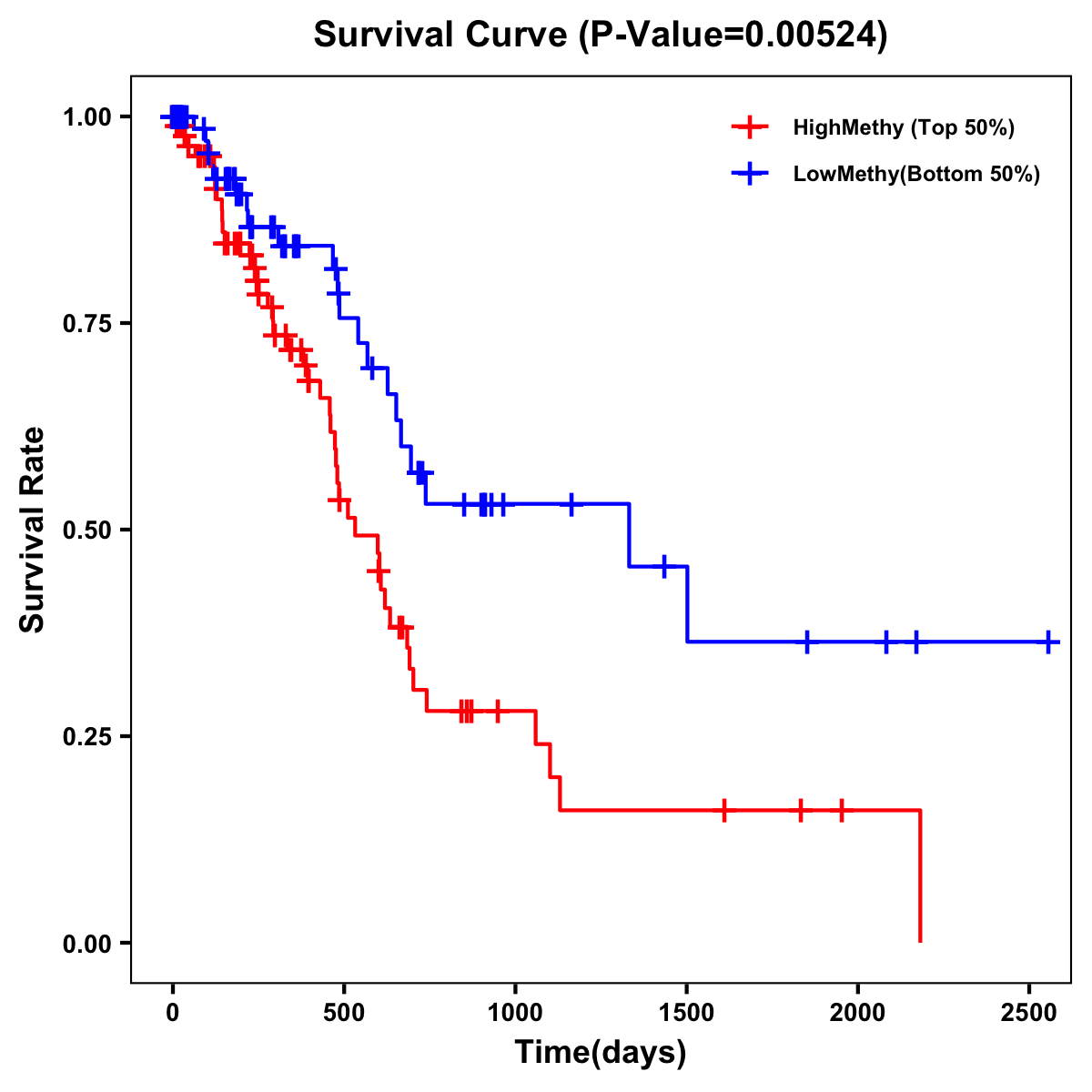 | Survival Curve of Pancreatic Cancer of Expression | Survival Curve of Pancreatic Cancer of Methylation | ||