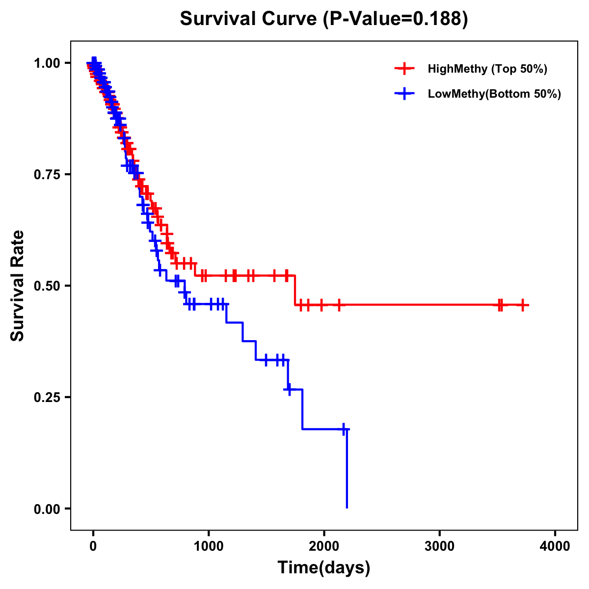 | Survival Curve of Stomach Cancer of Expression | Survival Curve of Stomach Cancer of Methylation | ||