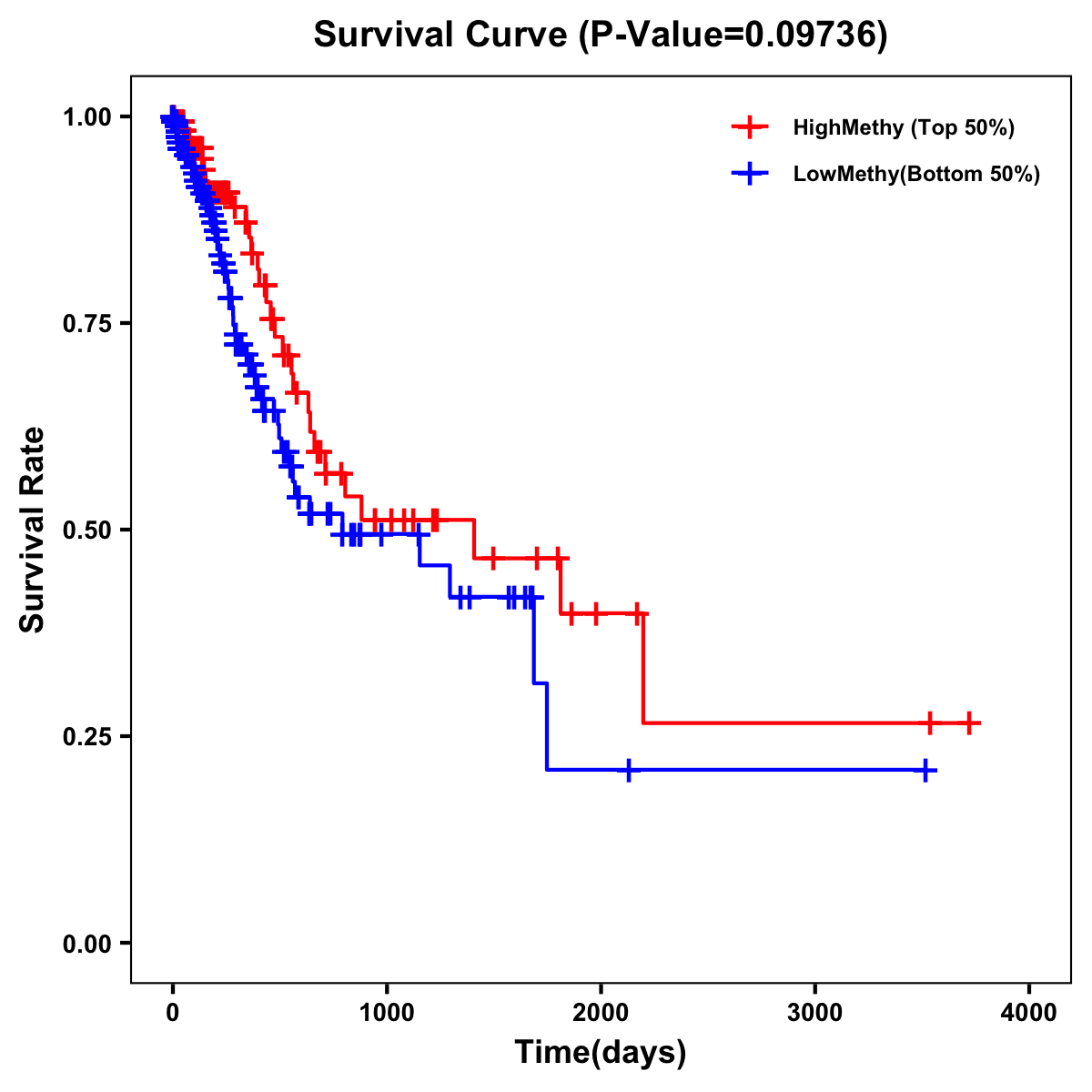 | Survival Curve of Stomach Cancer of Expression | Survival Curve of Stomach Cancer of Methylation | ||