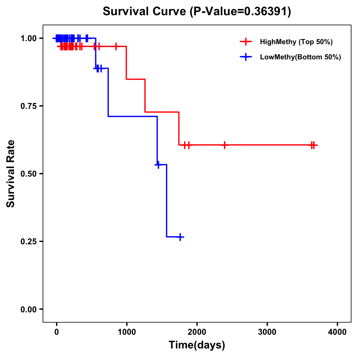 | Survival Curve of Colon Cancer on Methylation Level |