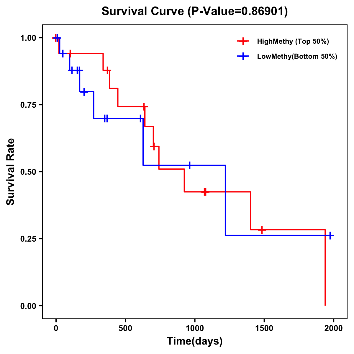| Survival Curve of Biliary tract Cancer of Expression | Survival Curve of Biliary tract Cancer of Methylation | ||