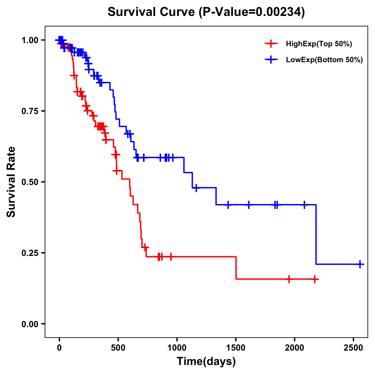 | Survival Curve of Pancreatic Cancer of Expression | Survival Curve of Pancreatic Cancer of Methylation | ||