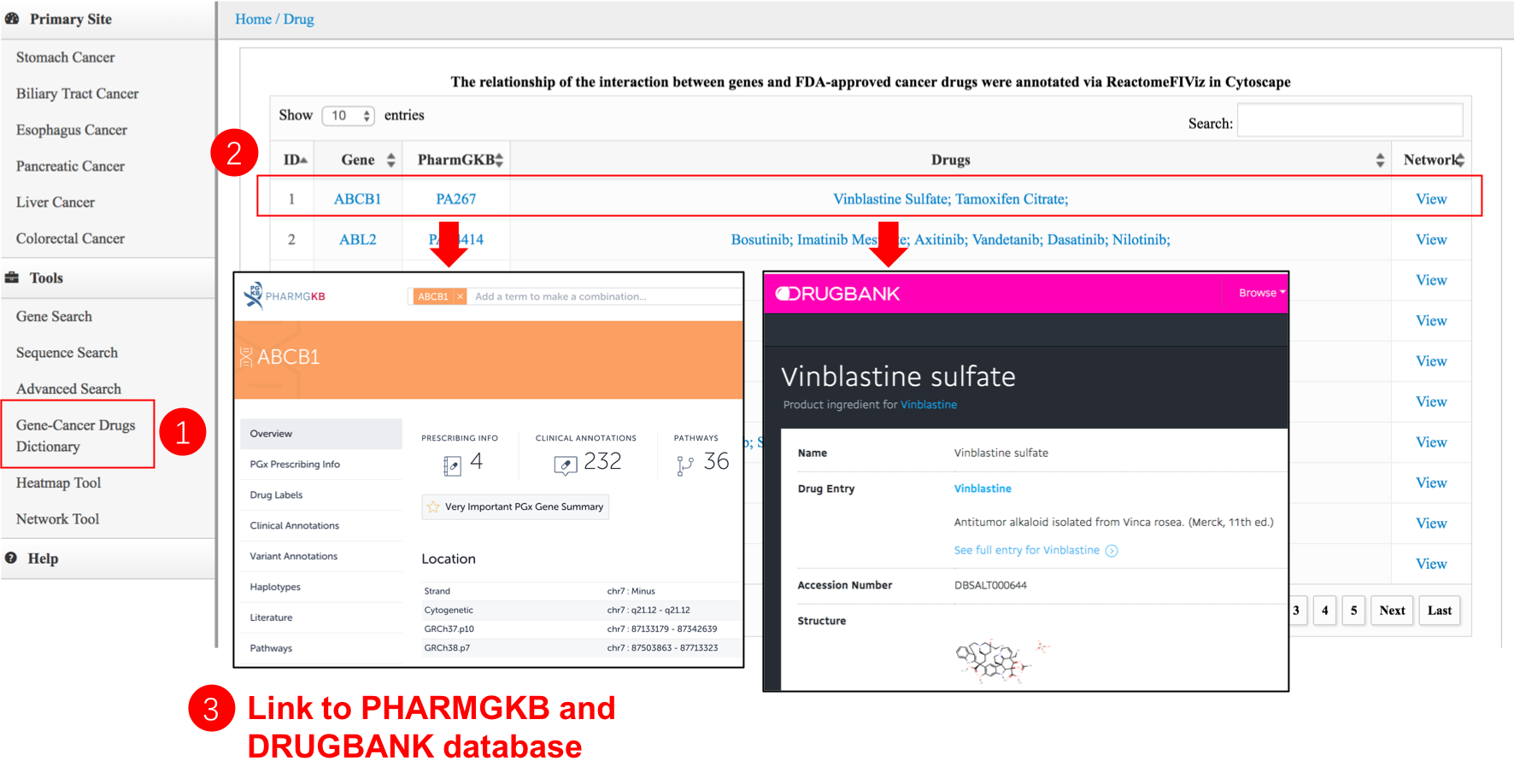 Secondly, the information in PharmGKB and Drugs columns is related to other two online databases, the Pharmacogenetics Knowledge Base (PharmGKB) and DrugBank, to find more details for genes, drugs and interactions.
