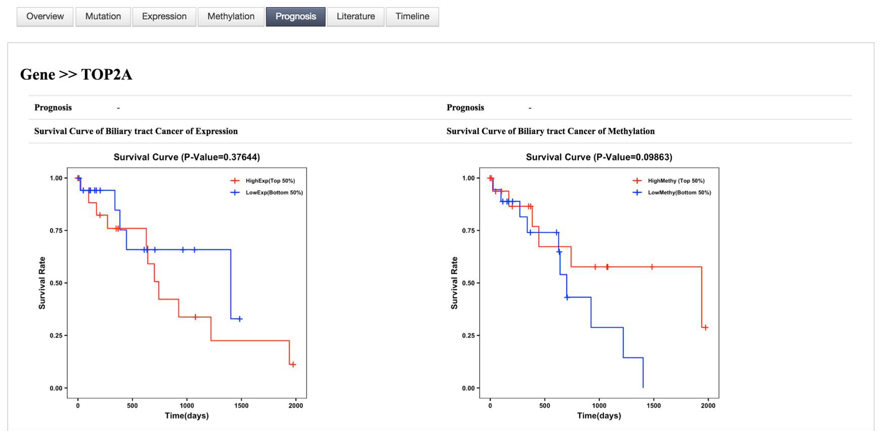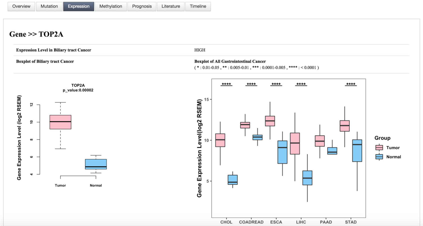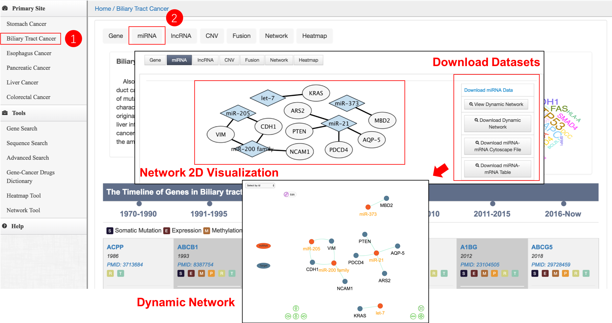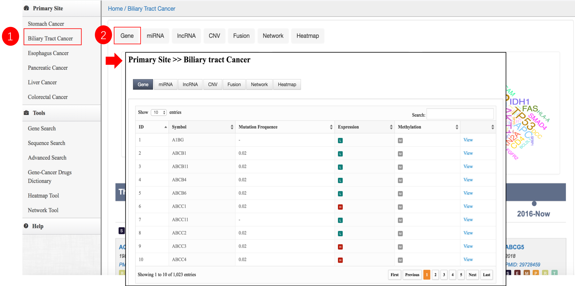 In GIDB, there are two kinds of timeline features, Cancer-Timeline and Gene-Timeline. We take Biliary Tract Cancer (BTC) as an example.