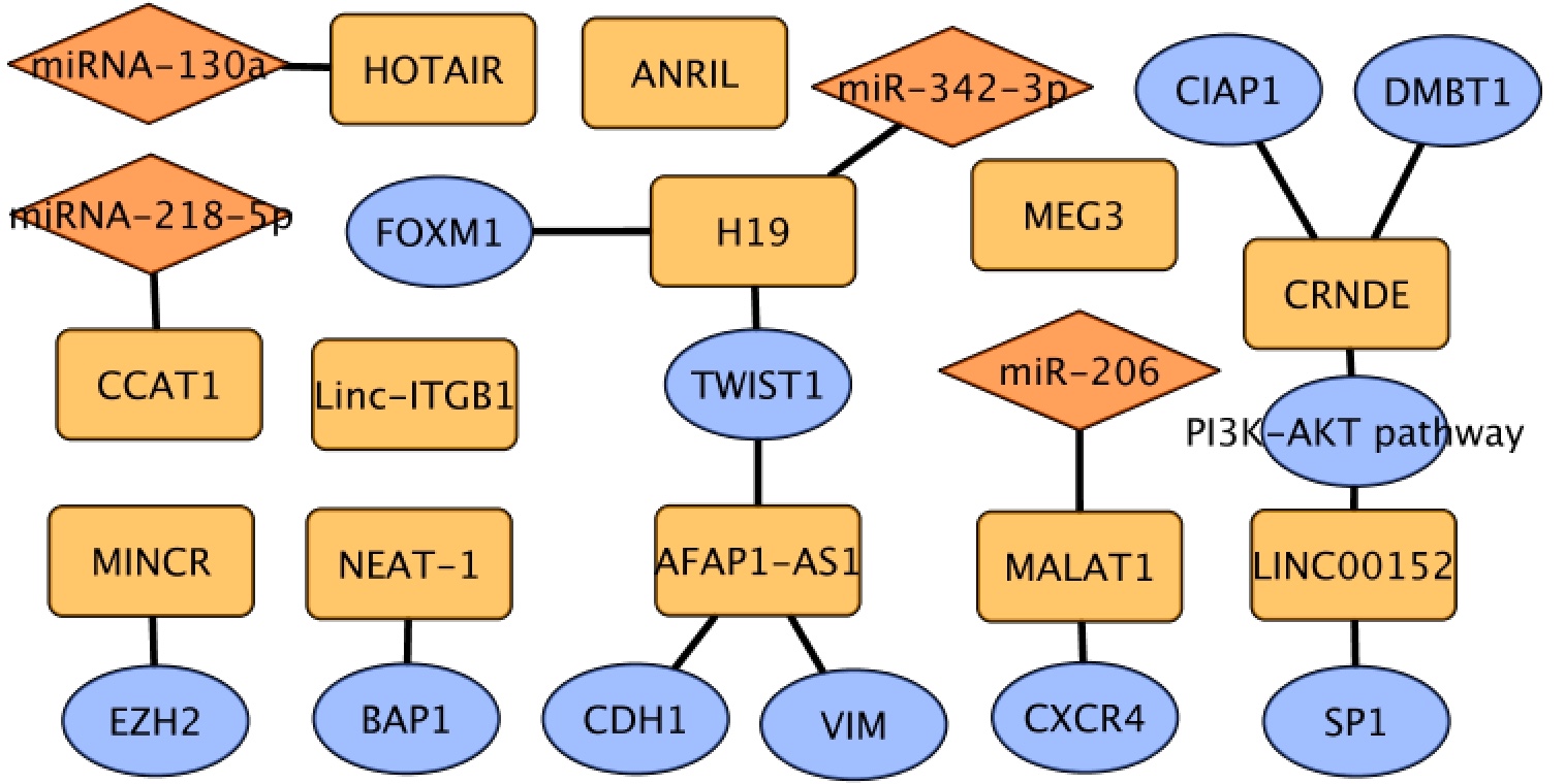 | 4 | H19 | TWIST1;miR-342-3p;FOXM1 | 2 | View |
