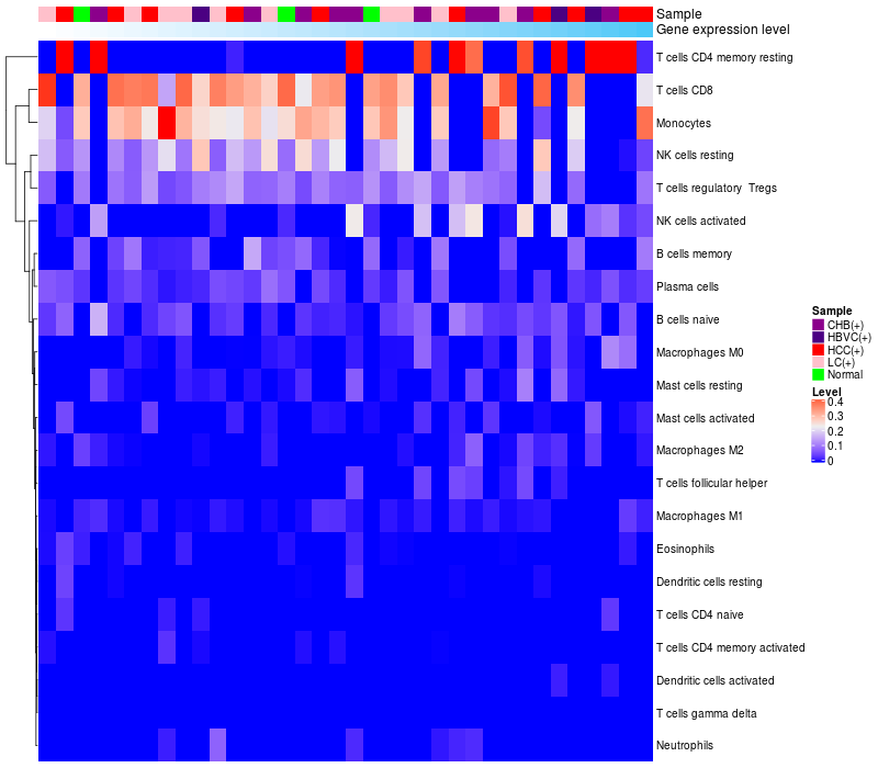 Liver hepatocellular carcinoma HCV (HBV+)(86), Liver hepatocellular carcinoma HCV (HBV-)(19), Liver hepatocellular carcinoma (HBV+)(209), Liver hepatocellular carcinoma (HBV+)(60), Paracancerous HCV (HBV+)(4), Paracancerous (HBV-)(28), Paracancerous (HBV+)(18) |