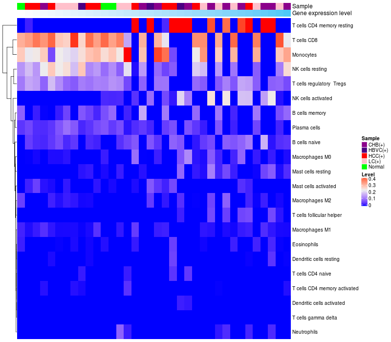 Liver hepatocellular carcinoma HCV (HBV+)(86), Liver hepatocellular carcinoma HCV (HBV-)(19), Liver hepatocellular carcinoma (HBV+)(209), Liver hepatocellular carcinoma (HBV+)(60), Paracancerous HCV (HBV+)(4), Paracancerous (HBV-)(28), Paracancerous (HBV+)(18) |