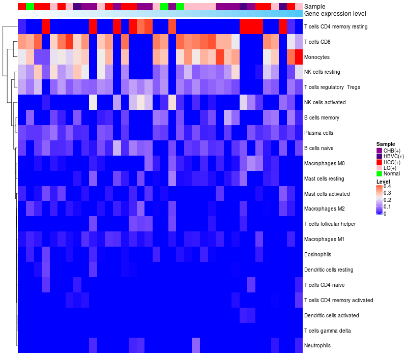 Liver hepatocellular carcinoma HCV (HBV+)(86), Liver hepatocellular carcinoma HCV (HBV-)(19), Liver hepatocellular carcinoma (HBV+)(209), Liver hepatocellular carcinoma (HBV+)(60), Paracancerous HCV (HBV+)(4), Paracancerous (HBV-)(28), Paracancerous (HBV+)(18) |