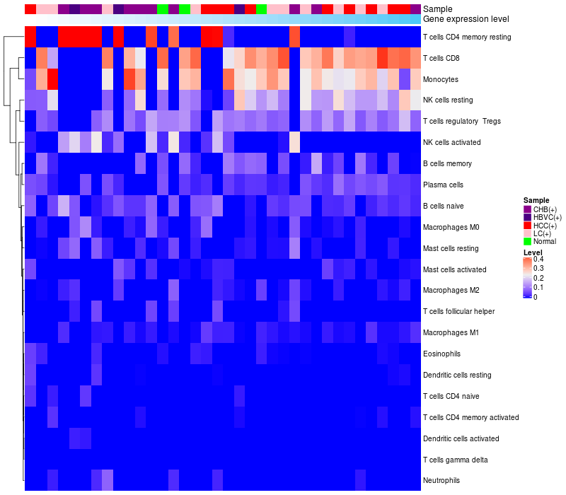 Liver hepatocellular carcinoma HCV (HBV+)(86), Liver hepatocellular carcinoma HCV (HBV-)(19), Liver hepatocellular carcinoma (HBV+)(209), Liver hepatocellular carcinoma (HBV+)(60), Paracancerous HCV (HBV+)(4), Paracancerous (HBV-)(28), Paracancerous (HBV+)(18) |
