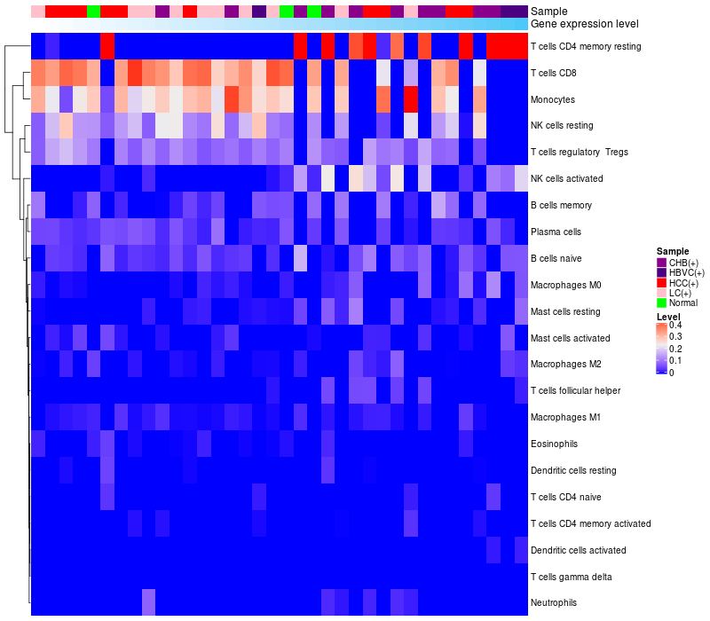 Liver hepatocellular carcinoma HCV (HBV+)(86), Liver hepatocellular carcinoma HCV (HBV-)(19), Liver hepatocellular carcinoma (HBV+)(209), Liver hepatocellular carcinoma (HBV+)(60), Paracancerous HCV (HBV+)(4), Paracancerous (HBV-)(28), Paracancerous (HBV+)(18) |