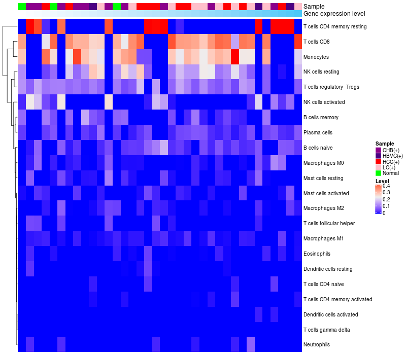 Liver hepatocellular carcinoma HCV (HBV+)(86), Liver hepatocellular carcinoma HCV (HBV-)(19), Liver hepatocellular carcinoma (HBV+)(209), Liver hepatocellular carcinoma (HBV+)(60), Paracancerous HCV (HBV+)(4), Paracancerous (HBV-)(28), Paracancerous (HBV+)(18) |