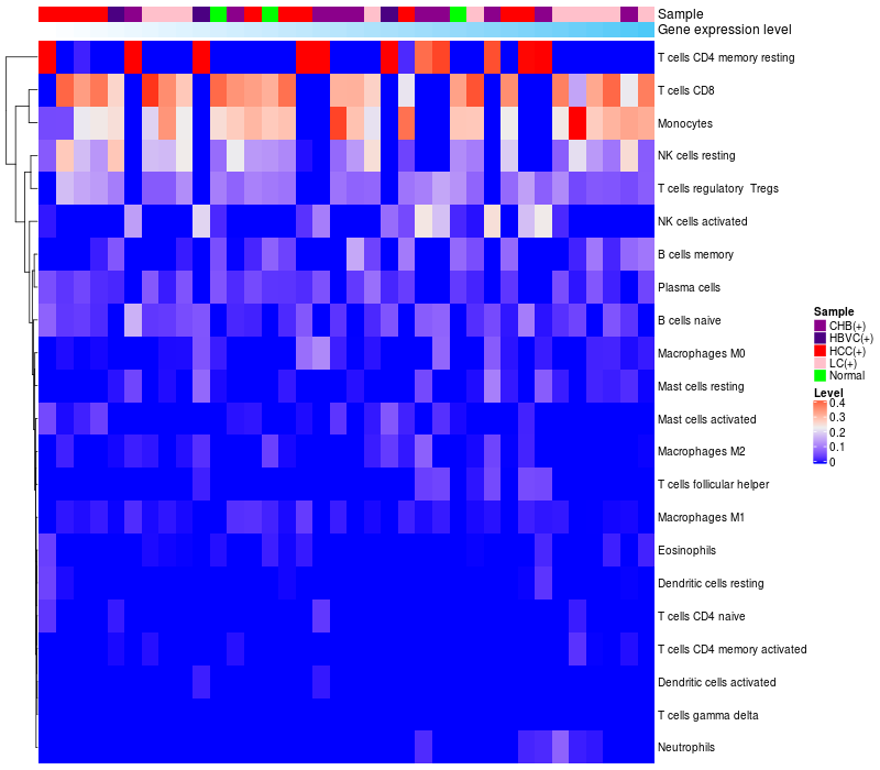 Liver hepatocellular carcinoma HCV (HBV+)(86), Liver hepatocellular carcinoma HCV (HBV-)(19), Liver hepatocellular carcinoma (HBV+)(209), Liver hepatocellular carcinoma (HBV+)(60), Paracancerous HCV (HBV+)(4), Paracancerous (HBV-)(28), Paracancerous (HBV+)(18) |