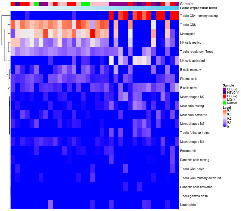 Relationship between gene expression and immune infiltrating cell level