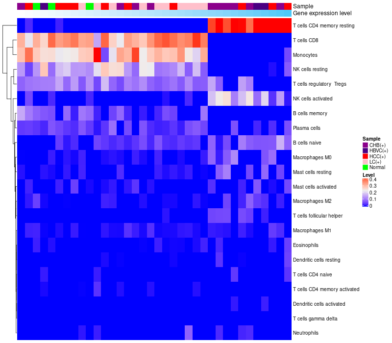 Relationship between gene expression and immune infiltrating cell level