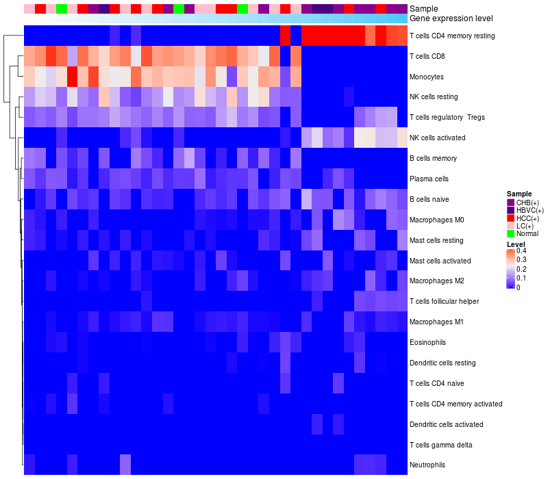 Liver hepatocellular carcinoma HCV (HBV+)(86), Liver hepatocellular carcinoma HCV (HBV-)(19), Liver hepatocellular carcinoma (HBV+)(209), Liver hepatocellular carcinoma (HBV+)(60), Paracancerous HCV (HBV+)(4), Paracancerous (HBV-)(28), Paracancerous (HBV+)(18) |