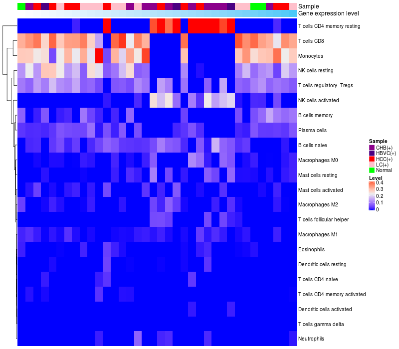 Liver hepatocellular carcinoma HCV (HBV+)(86), Liver hepatocellular carcinoma HCV (HBV-)(19), Liver hepatocellular carcinoma (HBV+)(209), Liver hepatocellular carcinoma (HBV+)(60), Paracancerous HCV (HBV+)(4), Paracancerous (HBV-)(28), Paracancerous (HBV+)(18) |