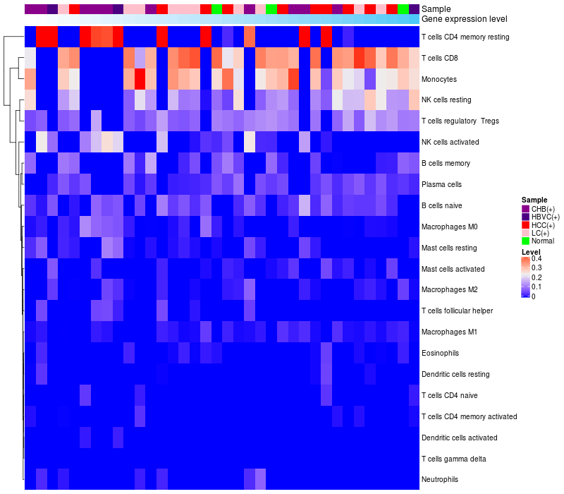 Liver hepatocellular carcinoma HCV (HBV+)(86), Liver hepatocellular carcinoma HCV (HBV-)(19), Liver hepatocellular carcinoma (HBV+)(209), Liver hepatocellular carcinoma (HBV+)(60), Paracancerous HCV (HBV+)(4), Paracancerous (HBV-)(28), Paracancerous (HBV+)(18) |