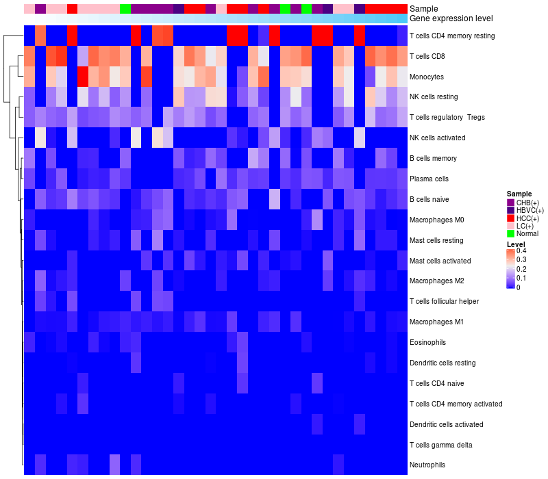 Liver hepatocellular carcinoma HCV (HBV+)(86), Liver hepatocellular carcinoma HCV (HBV-)(19), Liver hepatocellular carcinoma (HBV+)(209), Liver hepatocellular carcinoma (HBV+)(60), Paracancerous HCV (HBV+)(4), Paracancerous (HBV-)(28), Paracancerous (HBV+)(18) |