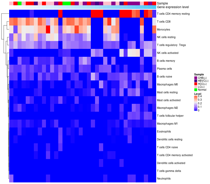 Liver hepatocellular carcinoma HCV (HBV+)(86), Liver hepatocellular carcinoma HCV (HBV-)(19), Liver hepatocellular carcinoma (HBV+)(209), Liver hepatocellular carcinoma (HBV+)(60), Paracancerous HCV (HBV+)(4), Paracancerous (HBV-)(28), Paracancerous (HBV+)(18) |