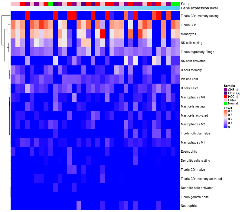 Liver hepatocellular carcinoma HCV (HBV+)(86), Liver hepatocellular carcinoma HCV (HBV-)(19), Liver hepatocellular carcinoma (HBV+)(209), Liver hepatocellular carcinoma (HBV+)(60), Paracancerous HCV (HBV+)(4), Paracancerous (HBV-)(28), Paracancerous (HBV+)(18) |