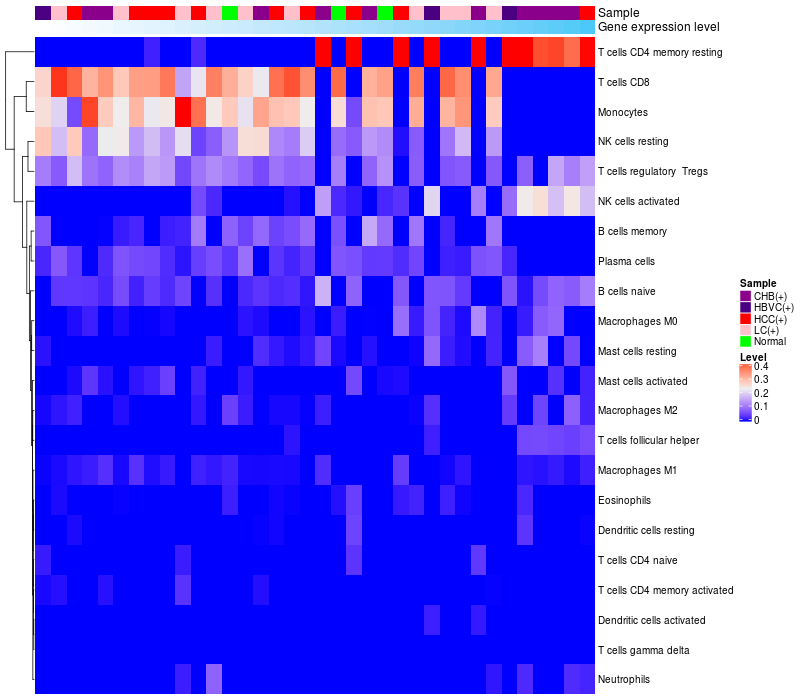 Liver hepatocellular carcinoma HCV (HBV+)(86), Liver hepatocellular carcinoma HCV (HBV-)(19), Liver hepatocellular carcinoma (HBV+)(209), Liver hepatocellular carcinoma (HBV+)(60), Paracancerous HCV (HBV+)(4), Paracancerous (HBV-)(28), Paracancerous (HBV+)(18) |