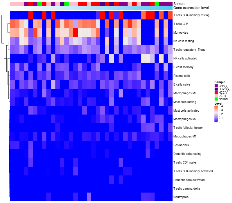 Relationship between gene expression and immune infiltrating cell level