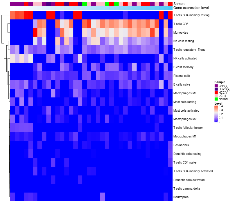 Liver hepatocellular carcinoma HCV (HBV+)(86), Liver hepatocellular carcinoma HCV (HBV-)(19), Liver hepatocellular carcinoma (HBV+)(209), Liver hepatocellular carcinoma (HBV+)(60), Paracancerous HCV (HBV+)(4), Paracancerous (HBV-)(28), Paracancerous (HBV+)(18) |