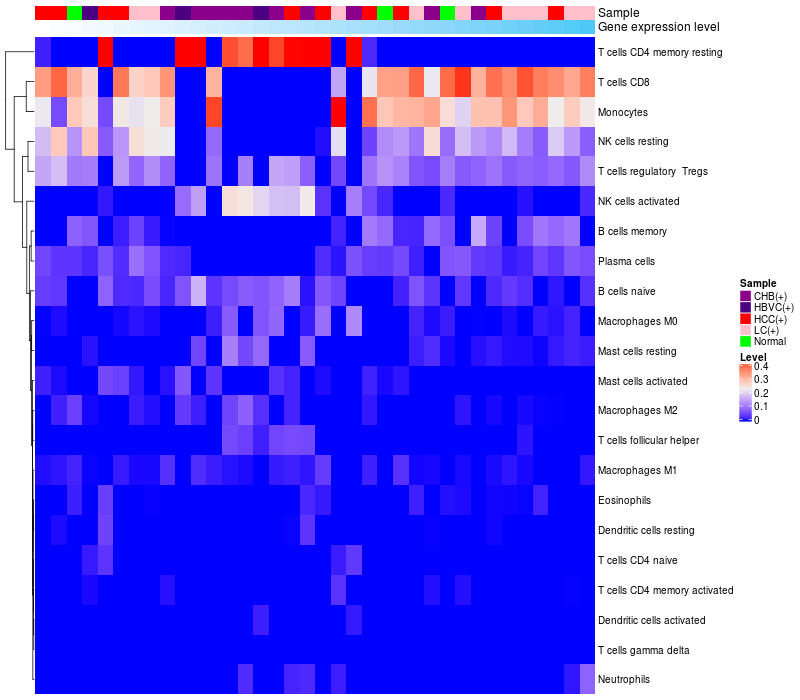 Liver hepatocellular carcinoma HCV (HBV+)(86), Liver hepatocellular carcinoma HCV (HBV-)(19), Liver hepatocellular carcinoma (HBV+)(209), Liver hepatocellular carcinoma (HBV+)(60), Paracancerous HCV (HBV+)(4), Paracancerous (HBV-)(28), Paracancerous (HBV+)(18) |