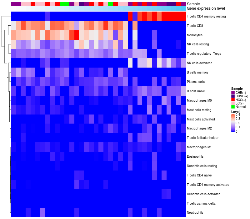Relationship between gene expression and immune infiltrating cell level