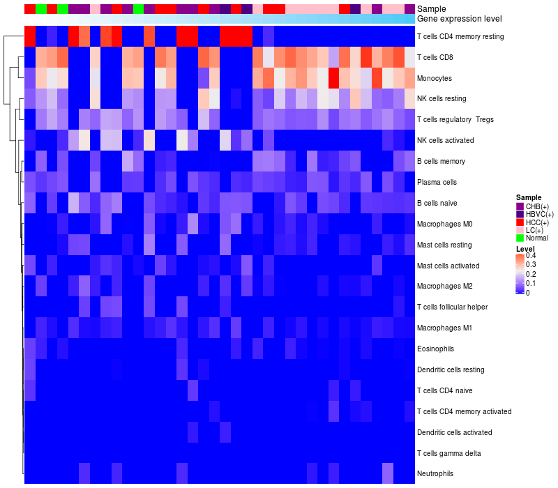 Liver hepatocellular carcinoma HCV (HBV+)(86), Liver hepatocellular carcinoma HCV (HBV-)(19), Liver hepatocellular carcinoma (HBV+)(209), Liver hepatocellular carcinoma (HBV+)(60), Paracancerous HCV (HBV+)(4), Paracancerous (HBV-)(28), Paracancerous (HBV+)(18) |