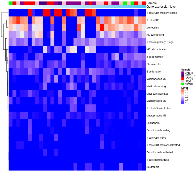 Liver hepatocellular carcinoma HCV (HBV+)(86), Liver hepatocellular carcinoma HCV (HBV-)(19), Liver hepatocellular carcinoma (HBV+)(209), Liver hepatocellular carcinoma (HBV+)(60), Paracancerous HCV (HBV+)(4), Paracancerous (HBV-)(28), Paracancerous (HBV+)(18) |