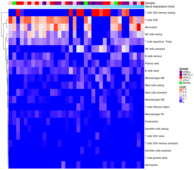 Liver hepatocellular carcinoma HCV (HBV+)(86), Liver hepatocellular carcinoma HCV (HBV-)(19), Liver hepatocellular carcinoma (HBV+)(209), Liver hepatocellular carcinoma (HBV+)(60), Paracancerous HCV (HBV+)(4), Paracancerous (HBV-)(28), Paracancerous (HBV+)(18) |