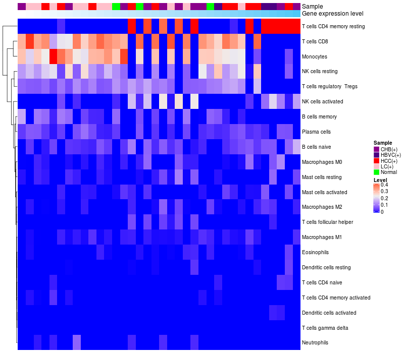 Relationship between gene expression and immune infiltrating cell level