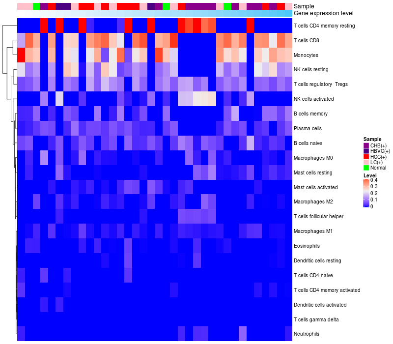 Relationship between gene expression and immune infiltrating cell level