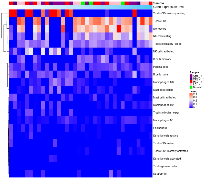 Relationship between gene expression and immune infiltrating cell level