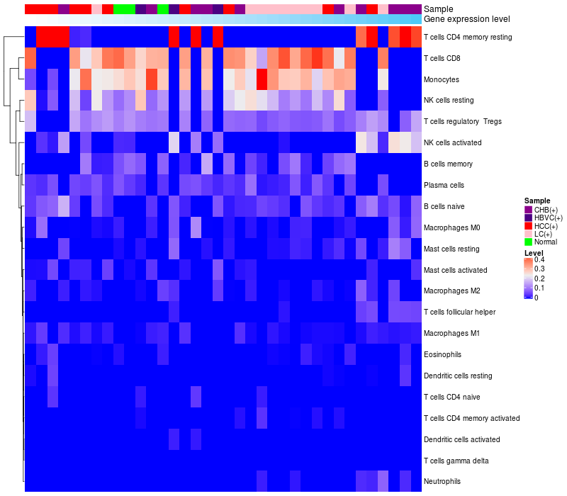 Liver hepatocellular carcinoma HCV (HBV+)(86), Liver hepatocellular carcinoma HCV (HBV-)(19), Liver hepatocellular carcinoma (HBV+)(209), Liver hepatocellular carcinoma (HBV+)(60), Paracancerous HCV (HBV+)(4), Paracancerous (HBV-)(28), Paracancerous (HBV+)(18) |