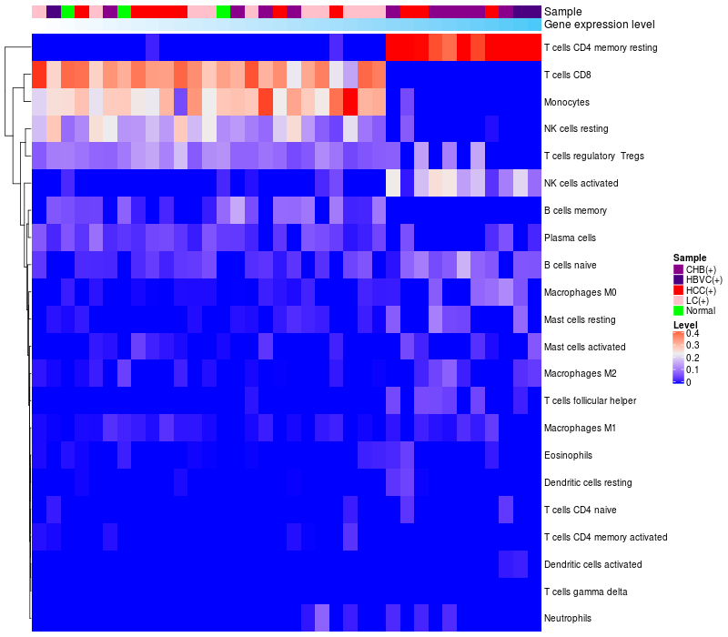 Relationship between gene expression and immune infiltrating cell level