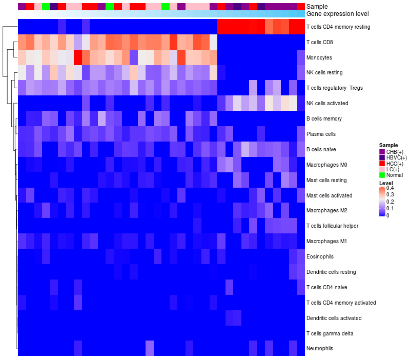 Liver hepatocellular carcinoma HCV (HBV+)(86), Liver hepatocellular carcinoma HCV (HBV-)(19), Liver hepatocellular carcinoma (HBV+)(209), Liver hepatocellular carcinoma (HBV+)(60), Paracancerous HCV (HBV+)(4), Paracancerous (HBV-)(28), Paracancerous (HBV+)(18) |