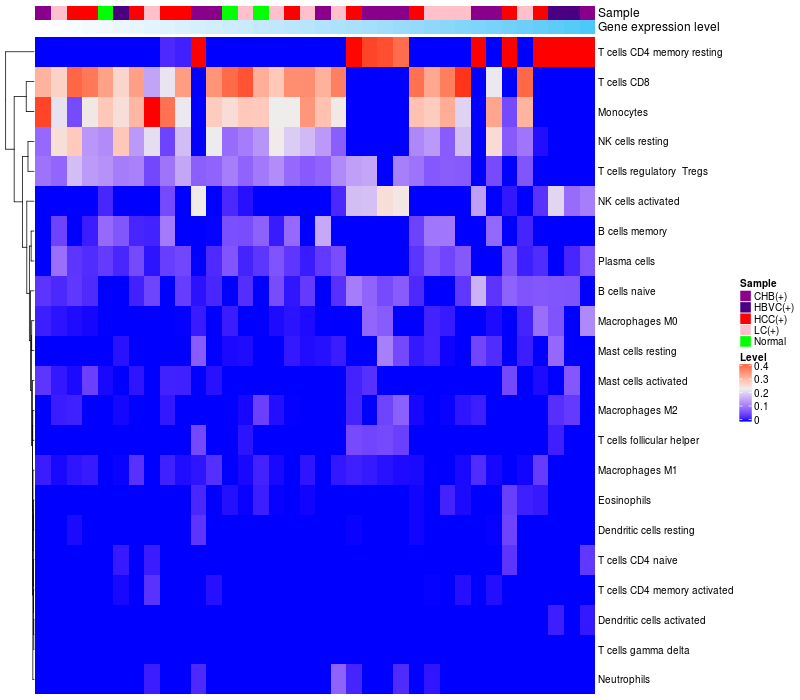 Liver hepatocellular carcinoma HCV (HBV+)(86), Liver hepatocellular carcinoma HCV (HBV-)(19), Liver hepatocellular carcinoma (HBV+)(209), Liver hepatocellular carcinoma (HBV+)(60), Paracancerous HCV (HBV+)(4), Paracancerous (HBV-)(28), Paracancerous (HBV+)(18) |