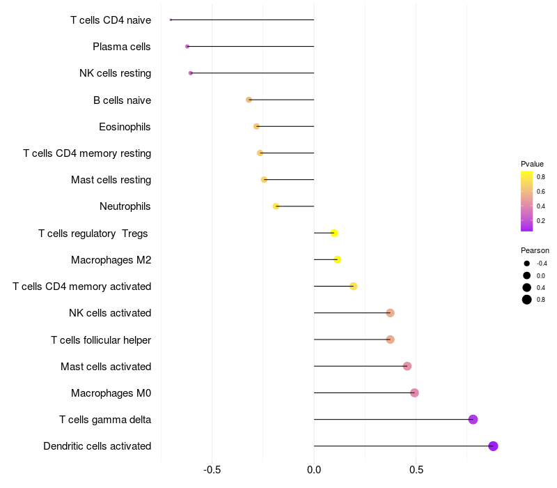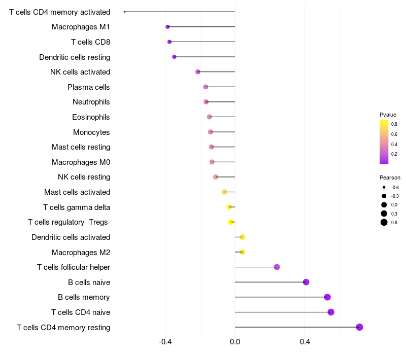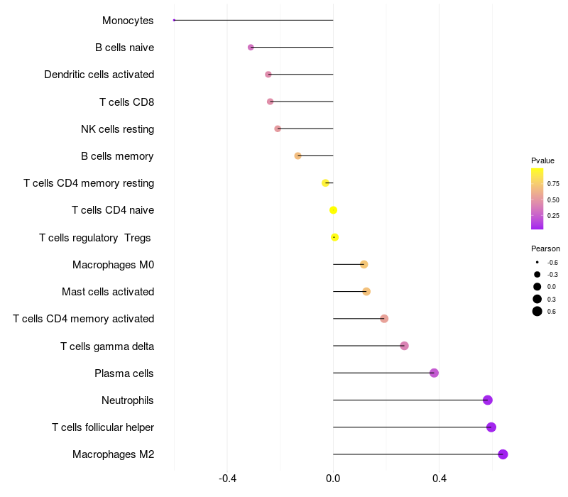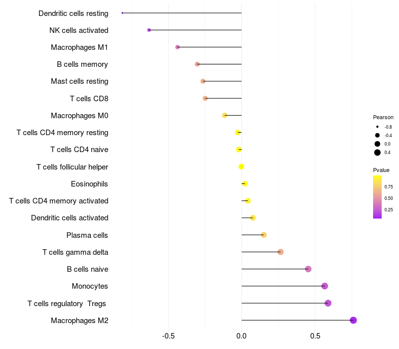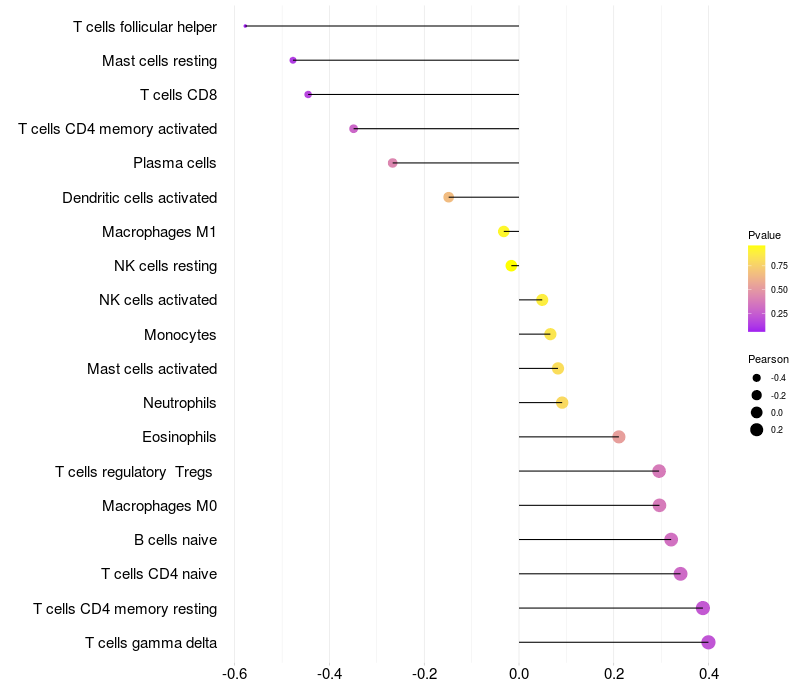 Lollipop of C1orf87 expression and immune infiltrating cell level correlation result in EBV+ samples