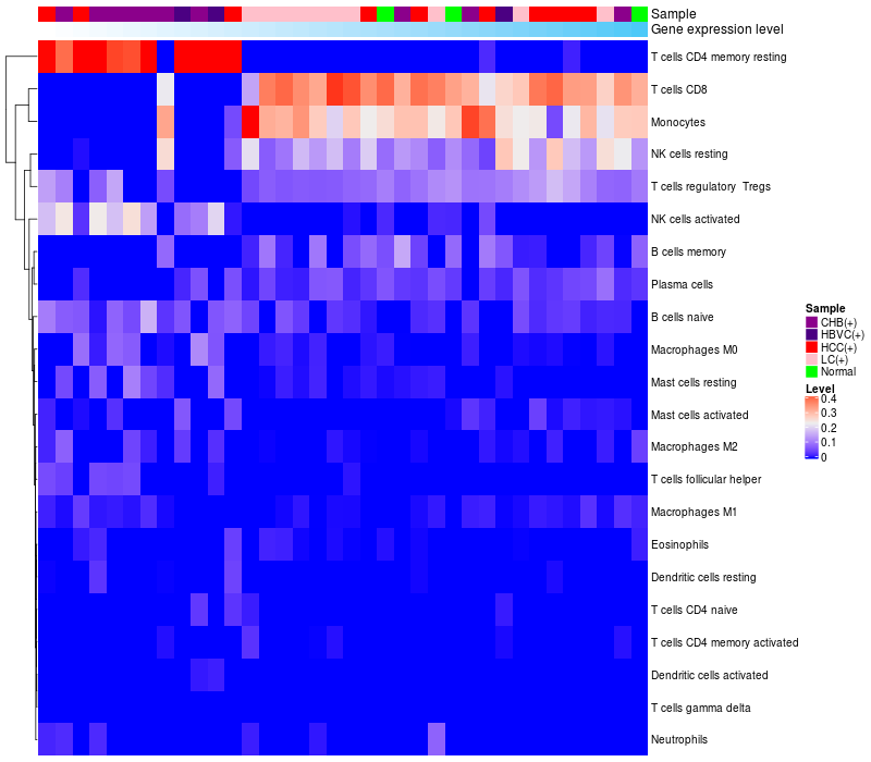 Relationship between gene expression and immune infiltrating cell level
