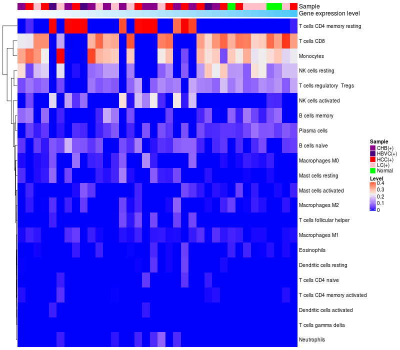 Relationship between gene expression and immune infiltrating cell level
