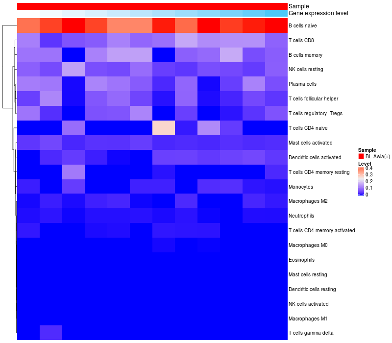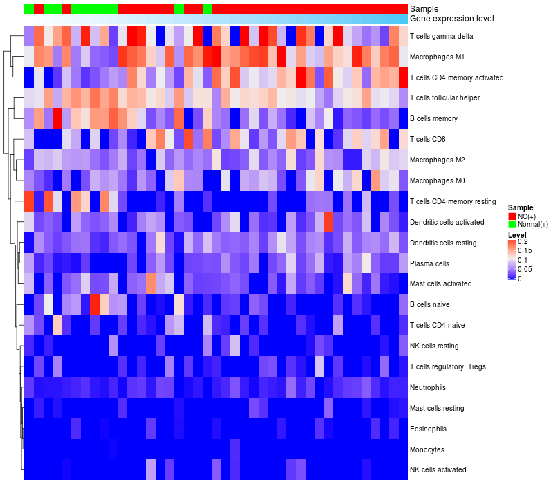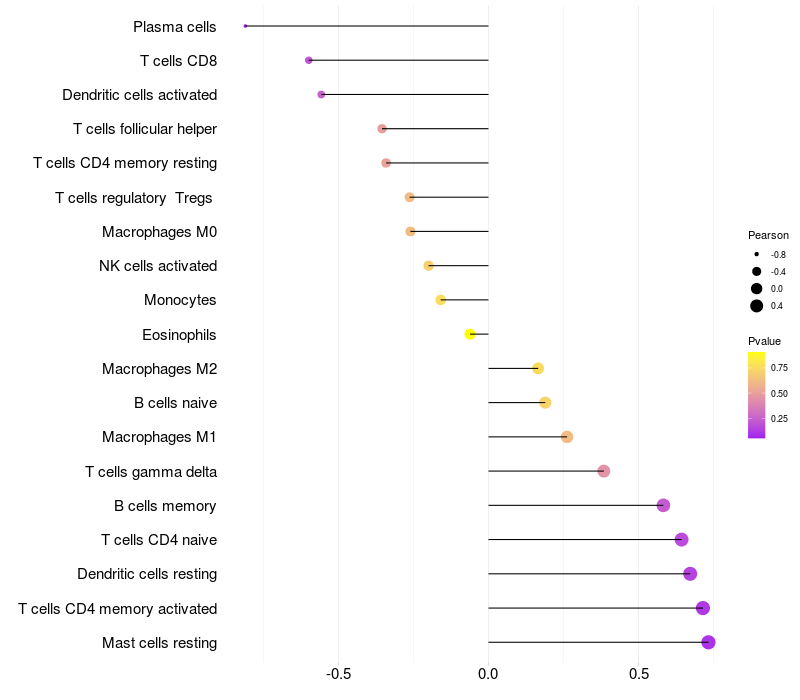 Lollipop of C5orf34 expression and immune infiltrating cell level correlation result in EBV+ samples