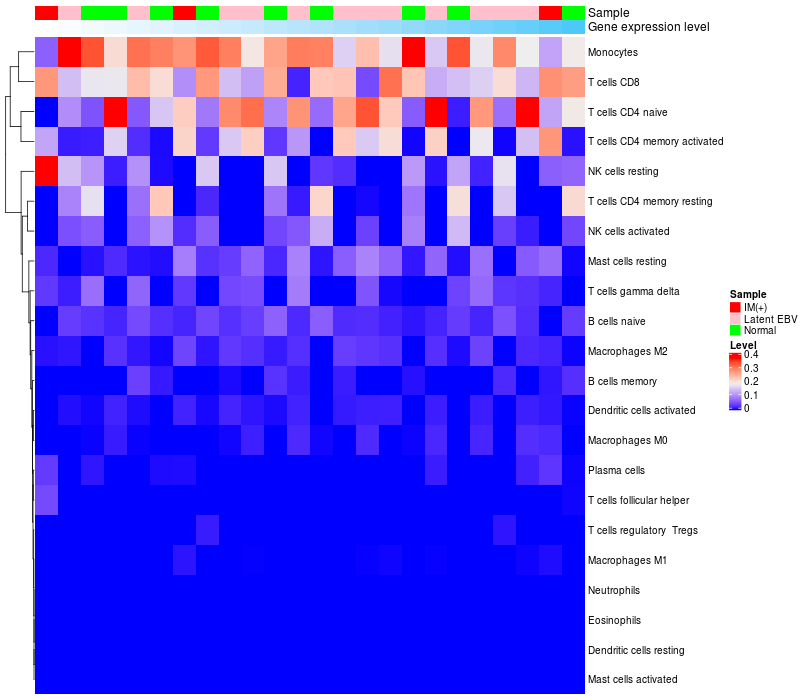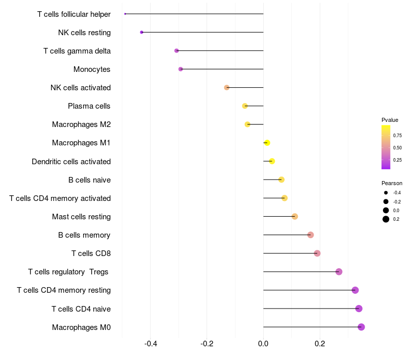 Lollipop of CABIN1 expression and immune infiltrating cell level correlation result in EBV+ samples