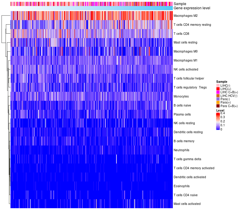 Relationship between gene expression and immune infiltrating cell level