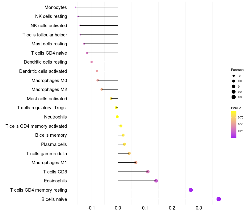Lollipop of CACNA2D1 expression and immune infiltrating cell level correlation result in HBV+ samples
