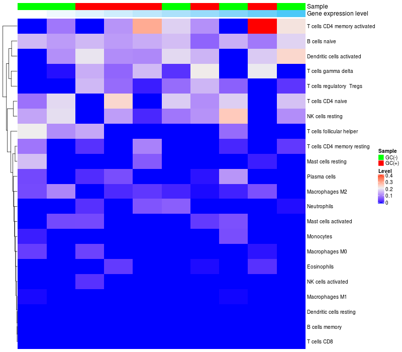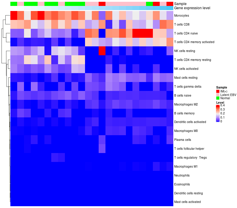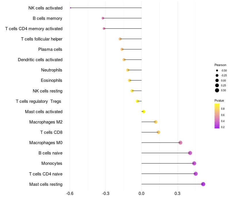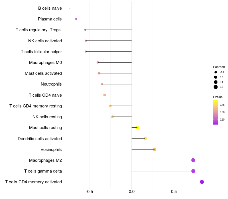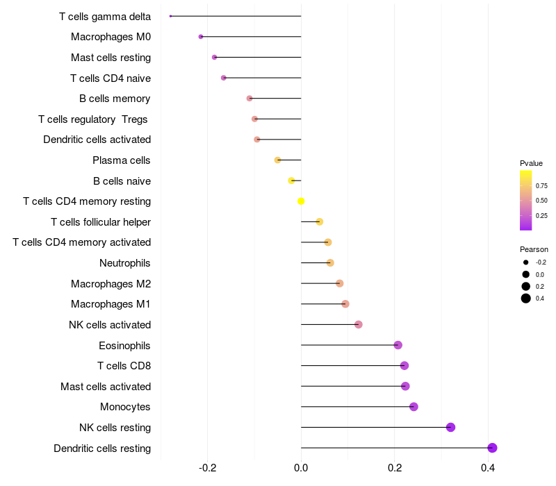Lollipop of CACNB4 expression and immune infiltrating cell level correlation result in EBV+ samples