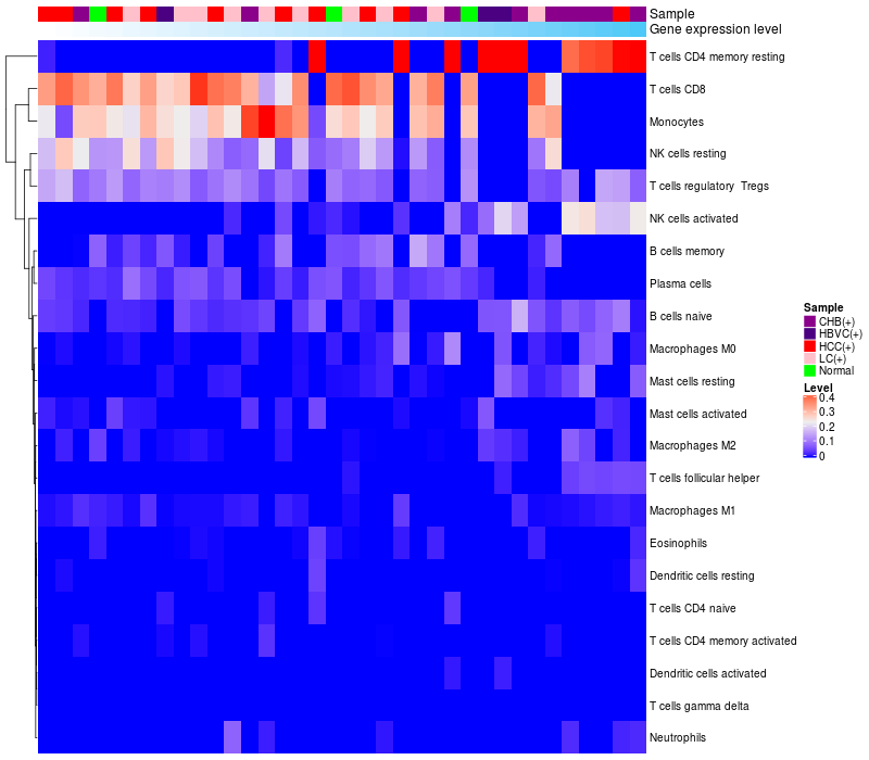 Liver hepatocellular carcinoma HCV (HBV+)(86), Liver hepatocellular carcinoma HCV (HBV-)(19), Liver hepatocellular carcinoma (HBV+)(209), Liver hepatocellular carcinoma (HBV+)(60), Paracancerous HCV (HBV+)(4), Paracancerous (HBV-)(28), Paracancerous (HBV+)(18) |