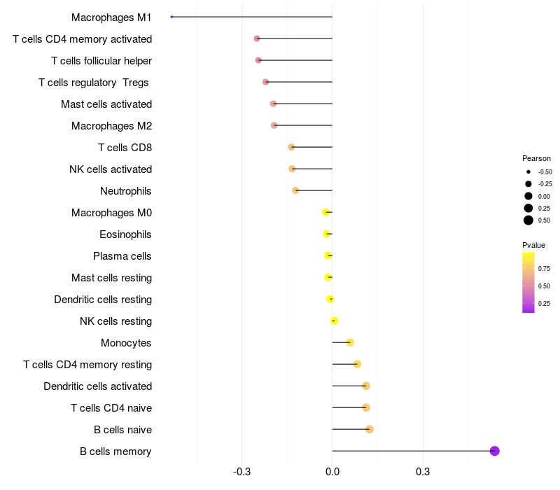 Lollipop of CALCOCO2 expression and immune infiltrating cell level correlation result in HBV+ Hepatocellular carcinoma samples
